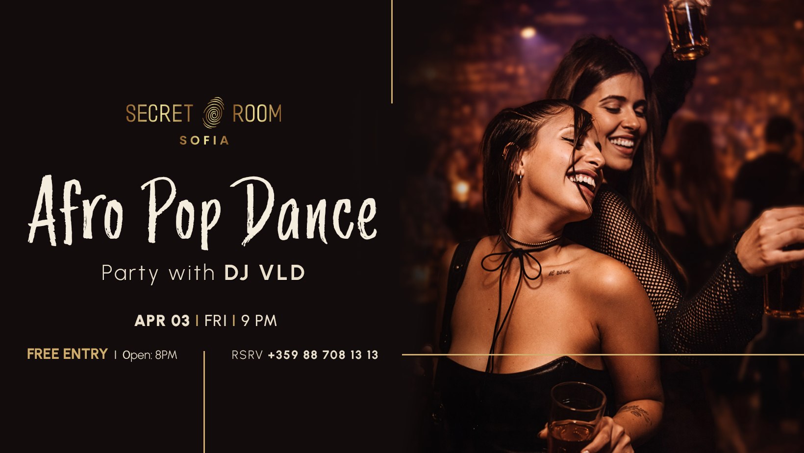 DJ VLD поема контрола над Secret Room за една епична Afro Pop вечер! Резервирайте сега: