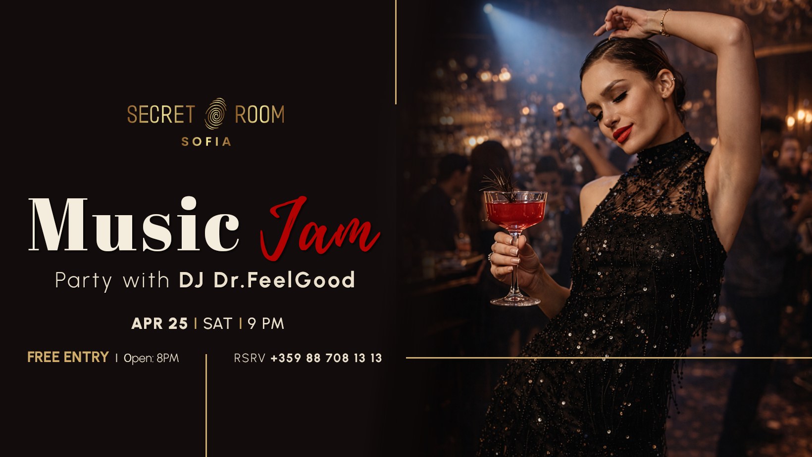 Dr. FeelGood е зад DJ пулта в бар Secret Room със своята селекция за Music Jam вечер.